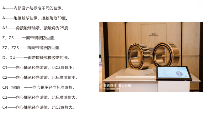 轴承的分类 从左往右数第一个或第一个和第二个数字加在一起 “6”表示深沟球轴承(0类) “4”表示双列深沟球轴承(0类) “2”或“1”表示调心球轴承(基本型号共四个数字)(1类) “21”“22”“23”“24”表示调心滚子轴承。(3类)